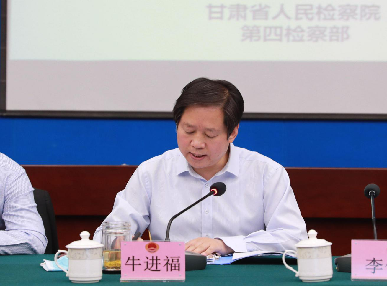 会上省院二级高级检察官牛进福通报了2019年以来全省检察机关办理经济犯罪案件情况,省院第四检察部、兰州市院第二检察部、兰州市城关区院、酒泉市肃州区院工作人员分别介绍了我省检察机关办理反洗钱案件情况以及存在的问题、永靖县系列骗取贷款案、“2.27”特大票据诈骗案,“今金贷”非法集资案、“好小仔”非法集资案、“善心汇”传销活动案的办案情况。