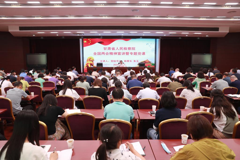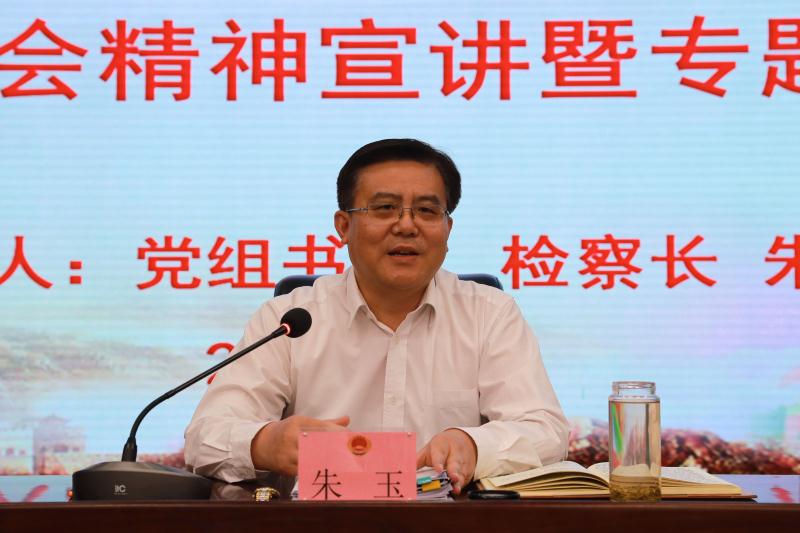 朱玉指出,这次全国两会是在决战脱贫攻坚、决胜全面建成小康社会的关键时刻,在我国疫情防控阻击战取得重大战略成果、统筹推进疫情防控和经济社会发展取得积极成效的背景下召开的,是一次统一思想、坚定信心、凝聚力量、砥砺前行的大会,是一次民主、团结、求实、奋进的大会,为我们战胜风险挑战、实现既定目标,进一步提振了信心、凝聚了民心、鼓舞了斗志、明确了方向。朱玉逐一对习近平总书记两会期间的重要讲话精神、政府工作报告、《民法典》、“涉港问题决定”、全国人大常委会及“两高”工作报告、全国政协会精神进行宣讲解读,谈了自己的认识和体会。最后,他强调,全省检察机关要将学习贯彻全国两会精神作为当前和今后一个时期的重中之重,做到“五个抓落实”。