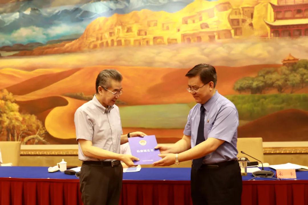 会上,朱玉向省公安厅等14家单位集中公开送达检察建议书;被建议单位代表作了表态发言。