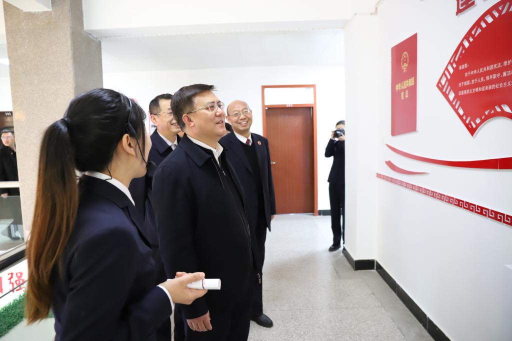 在临洮县检察院,朱玉和临洮县的省人大代表杨有义、刘彭举、陈文静一同察看了宪法学习宣传阵地、12309检察服务中心、检察文化室、检察云课堂、远程提讯室和职工活动室等场所,听取了定西市、临洮县检察院工作汇报和对明年工作的意见建议。朱玉对定西市、临洮县检察工作取得的成绩给予充分肯定,并就进一步做好各项检察工作提出要求。