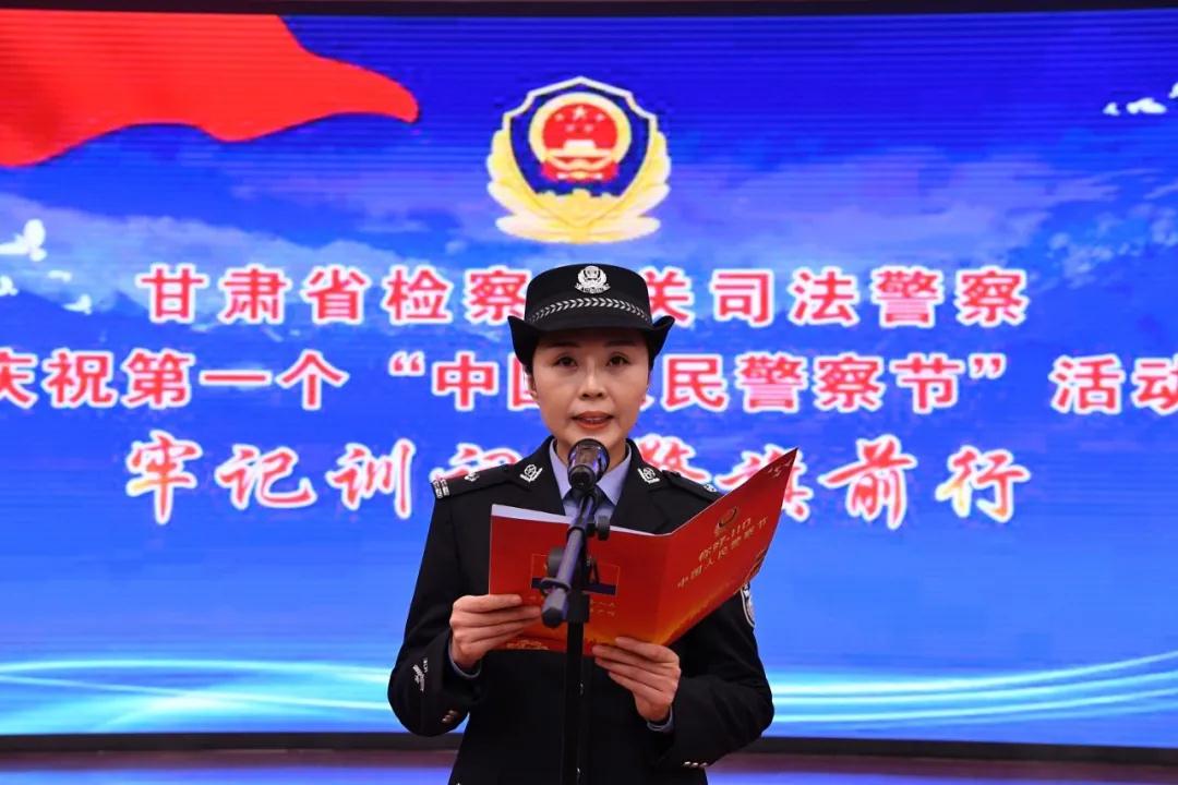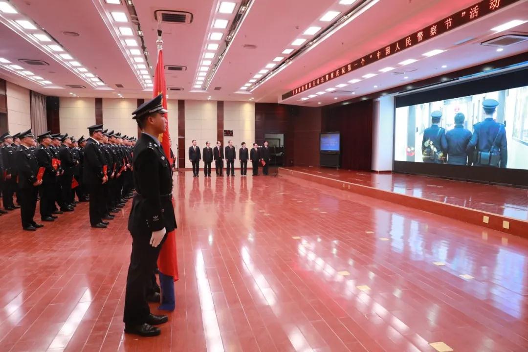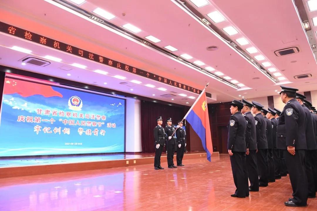 庆祝活动在嘹亮的国歌声中拉开了帷幕,全省检察机关司法警察代表面向中国人民警察警旗庄严宣誓,齐唱警歌《我们共同的誓言》。