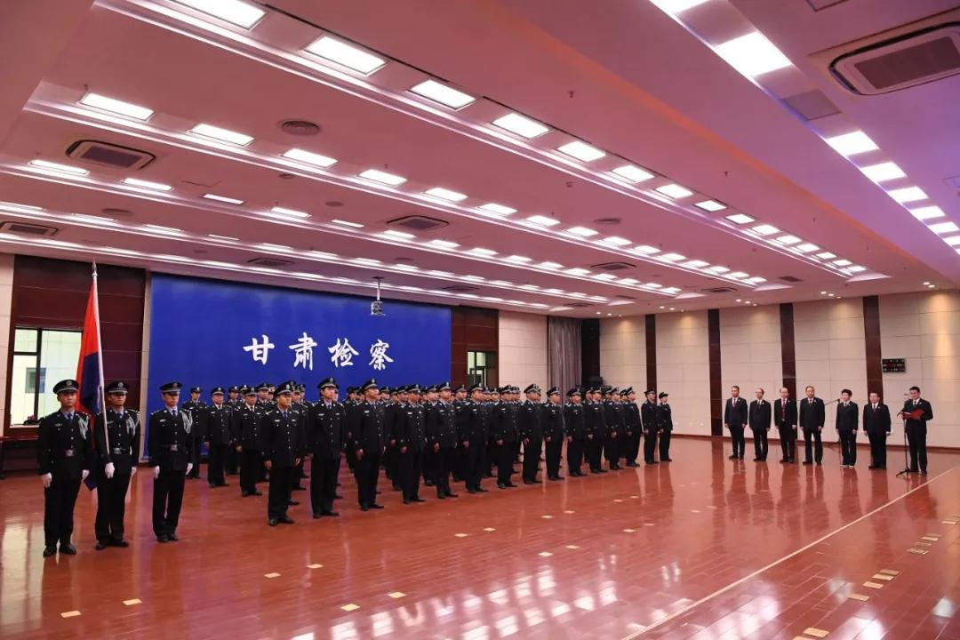 优秀司法警察代表带来了一套节奏分明、动作连贯、攻防兼备的擒敌拳表演,一声声响亮的口号、一个个有力的动作都在展现甘肃检察机关斗志昂扬的良好形象。