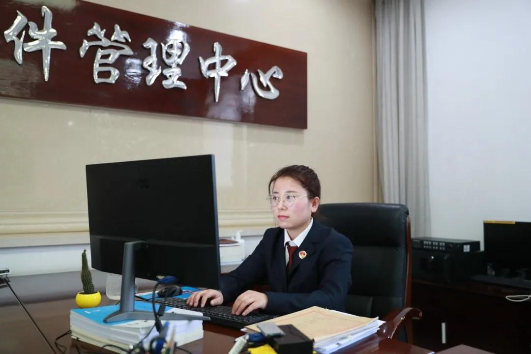干警们“秒切”进入工作模式,案件管理办公室干警刘芳打扫完办公室卫生后就投入到了紧张的工作中。