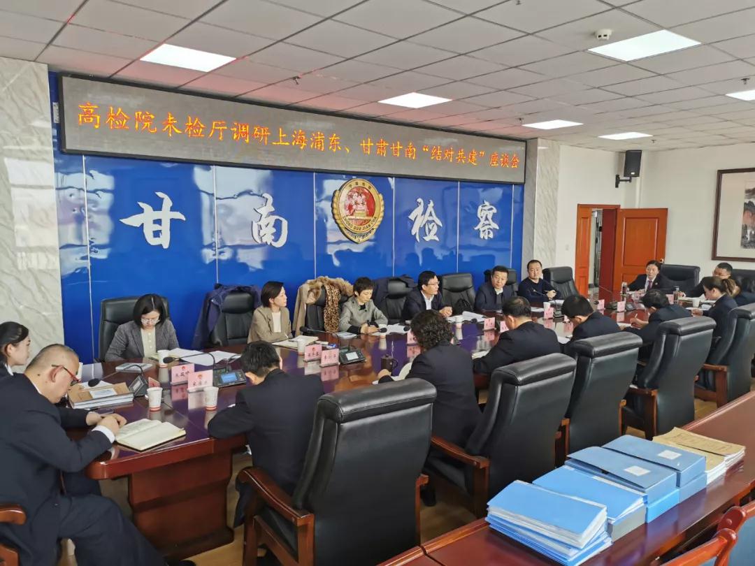 在甘南州检察院,李峰一行查阅了相关工作资料,认真听取了甘南州未成年人检察工作及甘南州检察院与上海浦东新区检察院结对共建工作情况汇报,就如何更好地开展结对共建工作和甘南州检察院、上海浦东新区检察院代表等与会人员进行了座谈。