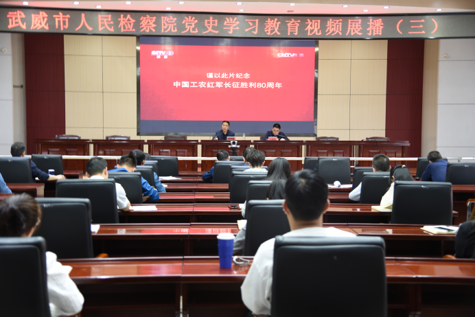 为深入贯彻落实习近平新时代中国特色社会主义思想和党的十九大精神,大力弘扬中国共产党的光荣传统,进一步激励全体检察干警的理想信念、历史责任感和荣誉感,5月8日下午,武威市院组织干警观看记录片《长征》。