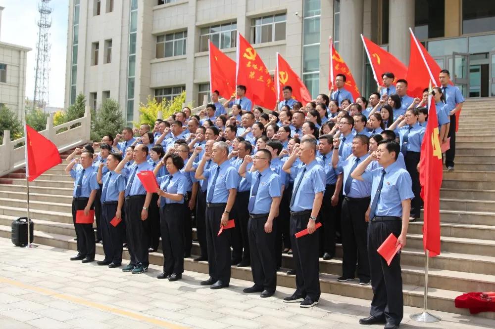 6月30日,嘉峪关市检察院组织全体党员干警开展“迎七一”集体宣誓活动。市检察院党组书记、检察长蔡玉霞带领全体干警重温入党誓词,表达新时代检察干警不忘初心、牢记使命、甘于奉献的信念和坚守。活动中,该院还为2021年新入党的预备党员配发了党员徽章。