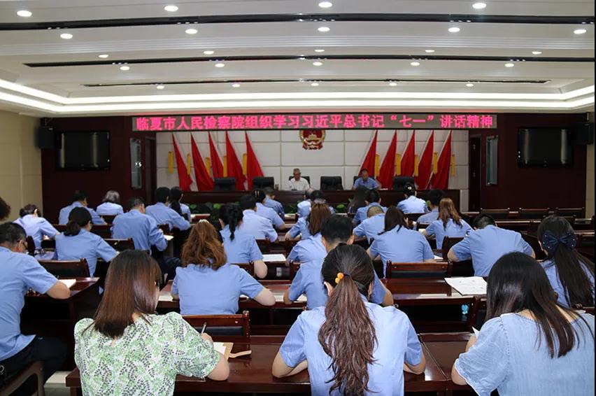 近日,临夏市检察院召开全院干警大会,认真学习贯彻习近平总书记“七一”重要讲话精神。会议强调,全院干警要按照中央和省、州、市委的统一部署,结合党史学习教育和政法队伍教育整顿,通过召开党组理论中心组学习、“三会一课”、组织生活会、举办专题报告会和读书班等多种形式,迅速掀起学习宣传贯彻热潮。努力把学习成效转化为更好的为党旗添彩、为大局服务、为人民司法的工作动力,转化为检察工作高质量发展、服务保障全市经济社会高质量发展的生动实践。