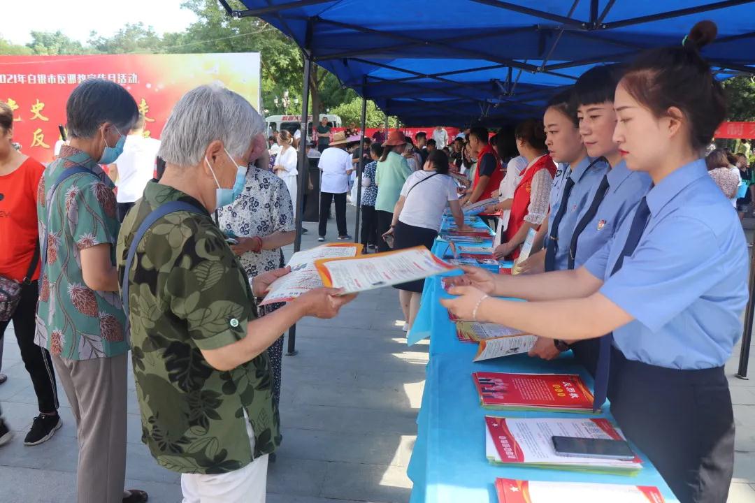 白银市白银区检察院组织干警参加区政法委主办的“学党史、跟党走、反邪教、促平安”反邪教集中宣传活动。活动现场摆放宣传展板,悬挂宣传横幅,该院干警向群众发放了宣传手册,并讲解了反邪教知识,使广大群众进一步了解邪教的种类、本质、危害及蛊惑、拉拢群众的伎俩,增强了群众识别、抵制邪教的能力。