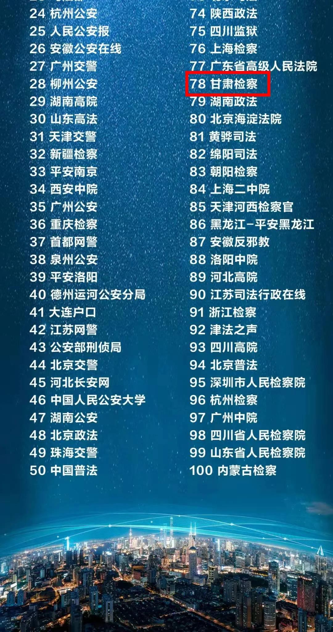 官方微博“@甘肃检察”入选“四个一百”优秀政法新媒体榜单