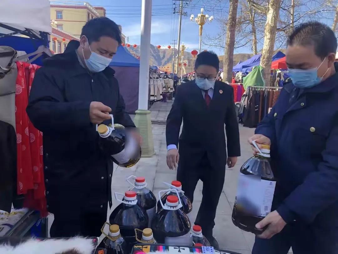 1月25日,迭部县检察院干警会同县市场监督管理局执法人员对该县电尕镇餐饮店、超市、农贸商铺以及年货街进行食品安全专项检查。检查组提醒食品店经营者要把食品安全放在第一位,保证后厨食品加工制作环节食材生熟分离、操作规范、干净卫生;杂货店及超市经营主体要及时检查电路电线、清理废弃纸箱,消除火灾隐患,确保渡过一个安全祥和的节日;对于个别店内卫生不洁净、摆放杂乱、价格公示牌未放在醒目位置等问题,检查组现场提出整改意见并要求尽快整改。