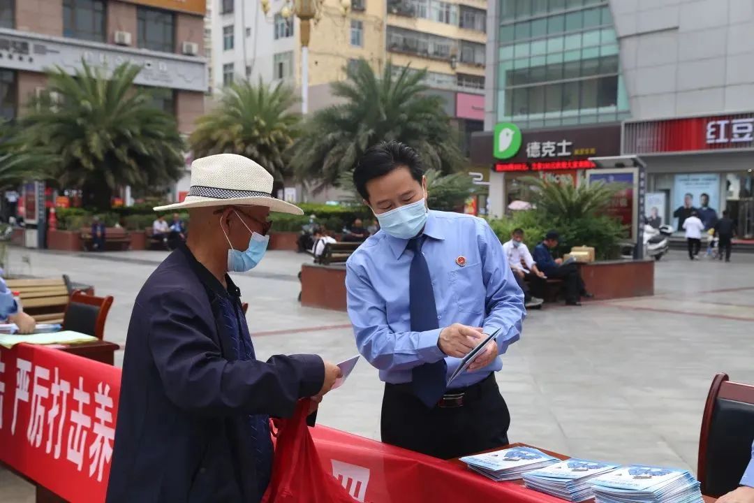 5月24日,陇南市检察院、武都区检察院干警在兰天广场联合开展打击养老诈骗专项宣传行动,通过张贴宣传标语、发放宣传手册等多种形式,向现场群众尤其是老年群体讲解常见的诈骗类型、常用手段,引导老年人及其家人要提高防骗意识和识骗能力,守好自己的养老钱。