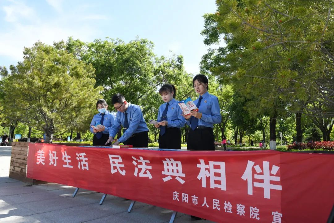 5月30日,庆阳市检察院第四检察部干警在庆阳市和谐广场开展民法典普法宣传活动,现场悬挂条幅,设置咨询台,向咨询群众讲解法律,宣讲民法热点问题,引导群众学法知法守法用法,推动民法典走进群众身边、走进群众心里。