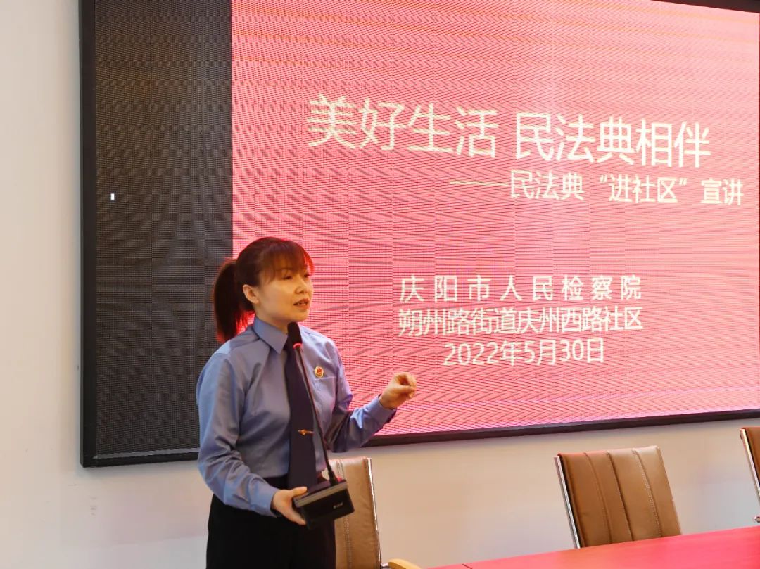 5月30日,庆阳市检察院机关党委组织15名党员干部,与朔州路庆州西路社区联合开展民法典“进社区”宣讲活动,重点围绕与老百姓息息相关的婚姻家庭、继承等规定及民事检察监督职能,以案释法、积极互动,加深社区群众对法典的理解。