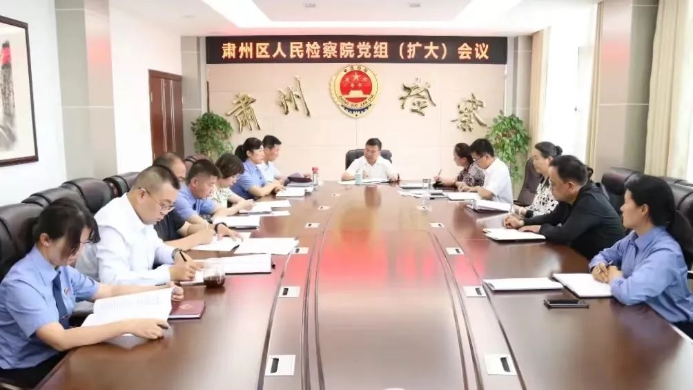 6月2日,酒泉市肃州区检察院召开党组(扩大)会议,专题传达学习省第十四次党代会精神。会议指出,全院要丰富学习形式,确保学习效果。要积极宣传,营造浓厚氛围。要紧密结合实际,有力贯彻落实,切实把党代会精神和省、市、区委决策部署不折不扣落实到肃州检察工作中。要加强队伍建设,提升履职能力,以检察工作高质量发展服务保障全区经济社会高质量发展,为加快建设经济繁荣、社会文明、环境优美、人民幸福的酒泉首善之区和现代化区域中心城市贡献检察力量。