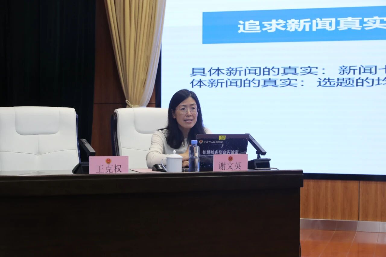 中国传媒大学国际新闻与传播系主任、教授、博士生导师张龙,以“新时代检察文化建设的宣传话语创新”为题,专门为此次培训班量身打造授课内容,结合第十届全国检察机关“三微”展示活动获奖作品,包括甘肃检察机关获奖作品《从麦田到餐桌,感受三餐四季“中国味”》等为例,从国际传播视野、影视创作途径、未来检察机关宣传话语创新入手,探讨如何挖掘检察文化内涵、创新话语体系。课堂上,主讲人抛出一个个问题,学员们积极参与,互动中启迪了智慧,开拓了思路,让学员们直呼“过瘾”。