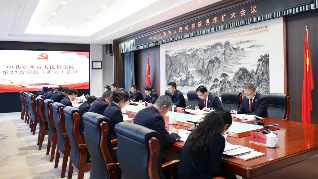 10月28日,定西市检察院党组书记、检察长石占全主持召开党组(扩大)会议,传达学习党的二十届四中全会精神,研究部署初步贯彻落实措施。会议要求,要切实把思想和行动统一到全会精神上来,深刻领会全会重大意义,增强政治自觉,精准把握全会核心要义,明确检察履职方向重点,推动全会精神见行见效。要坚持以加强检察机关法律监督为主线、推动检察工作高质量发展为主题、检察改革为动力、检察管理为抓手、科技强检为支撑、全面从严管党治检为保障,着力推动全市检察工作高质量发展,为服务保障“十五五”规划的顺利实施作出应有贡献。