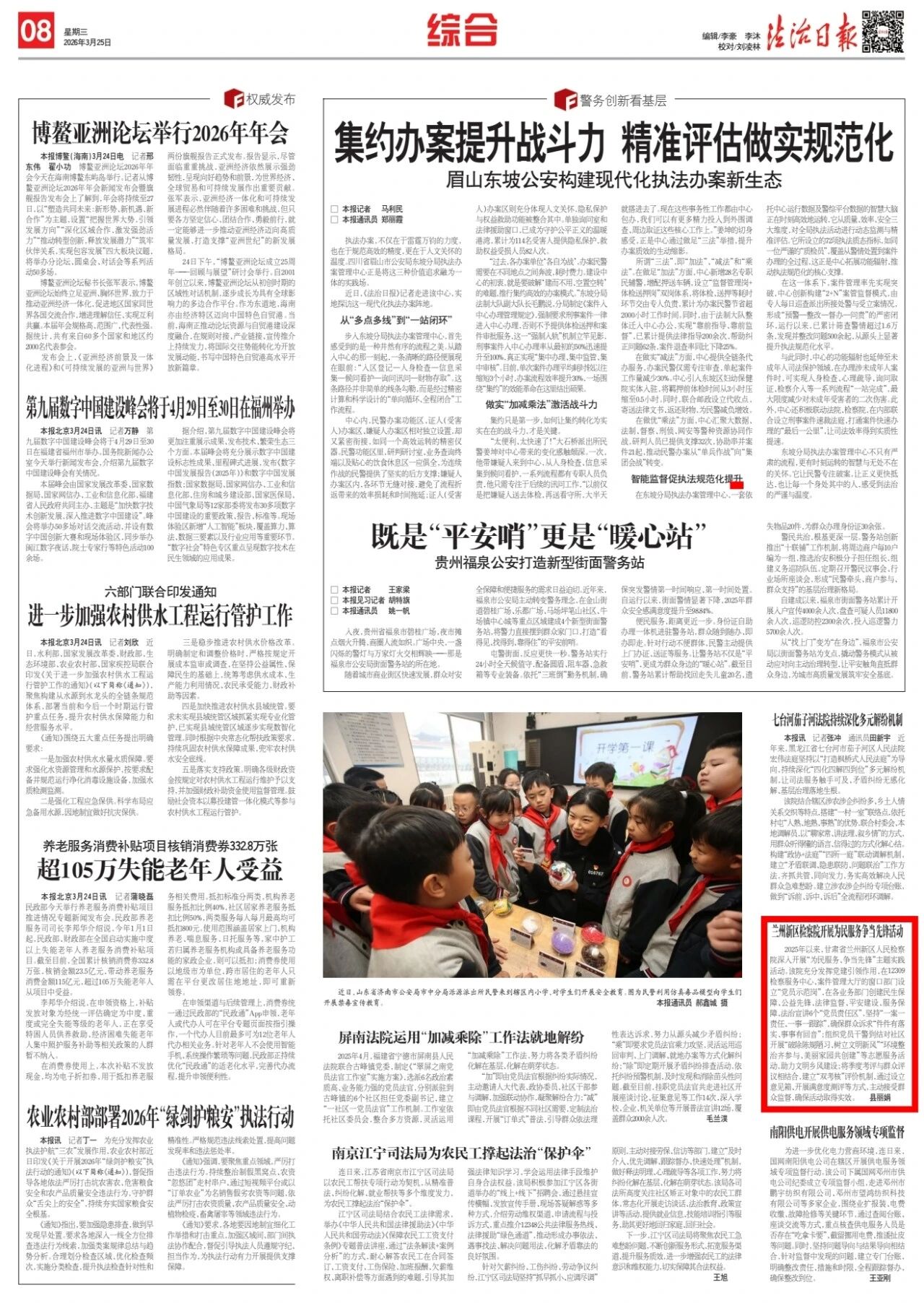 2026年3月25日,法治日报刊发《兰州新区检察院开展为民服务争当先锋活动》。