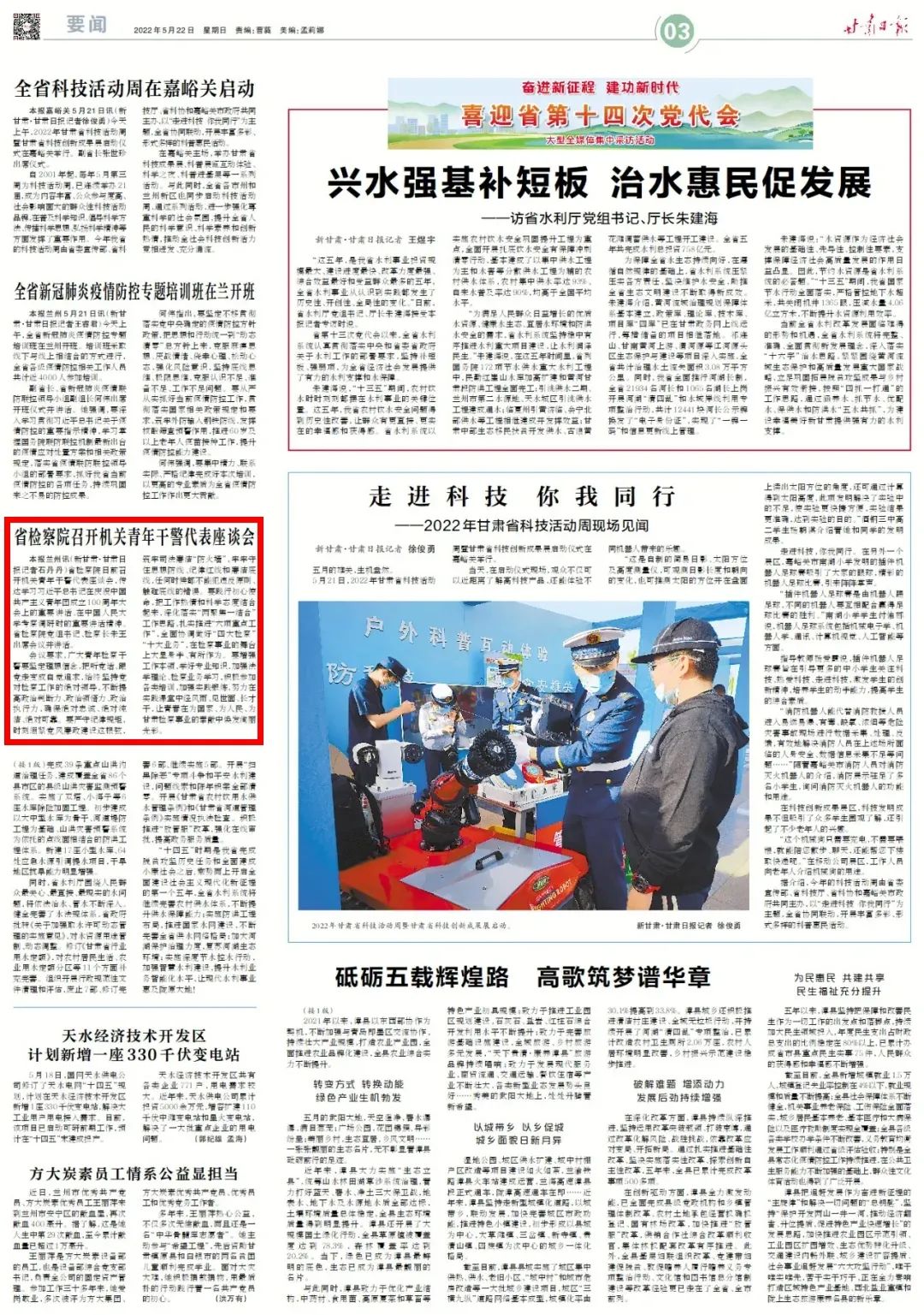 2022年5月22日,甘肃日报三版刊发《成人有声小说召开机关青年干警代表座谈会》。