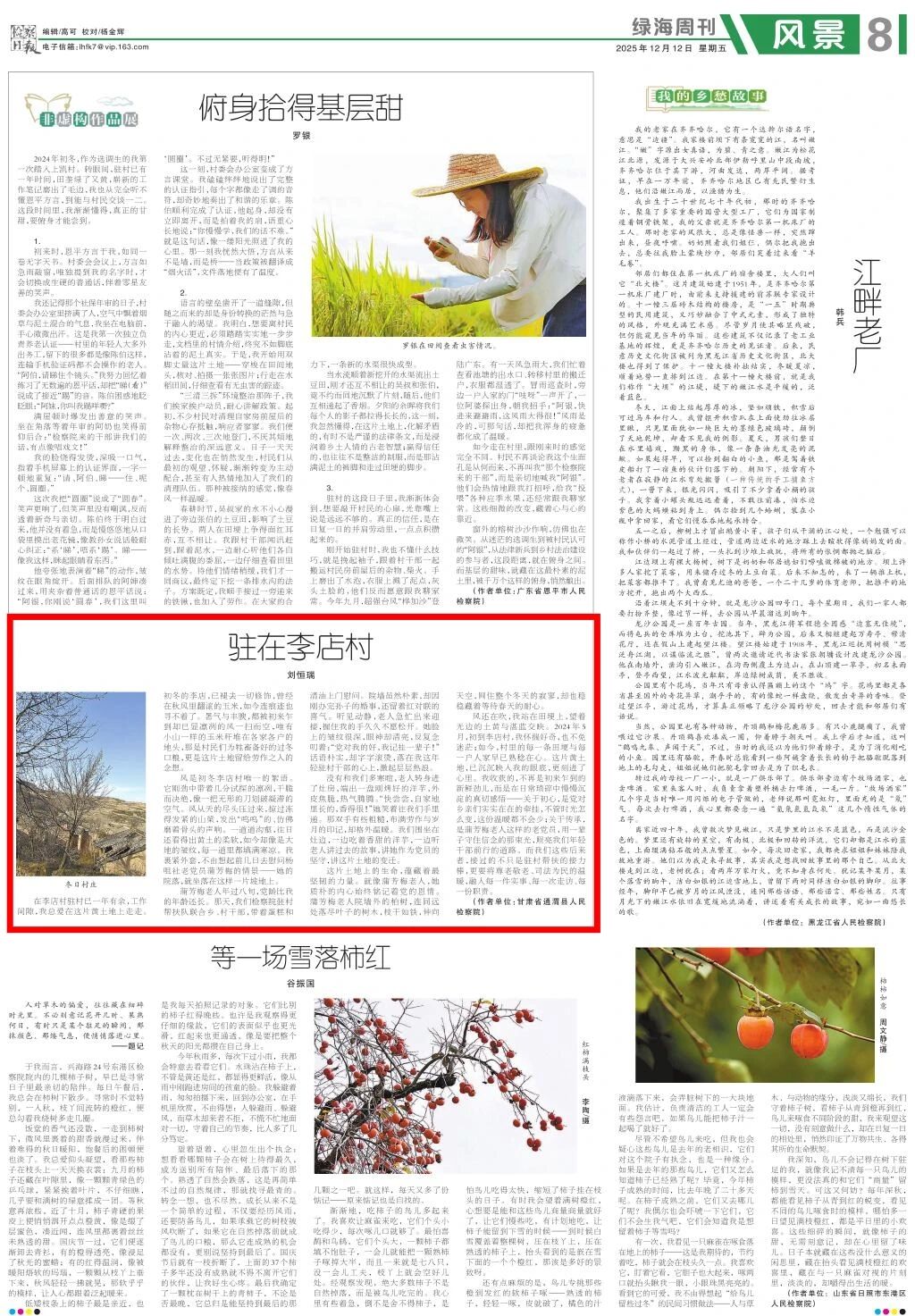 2025年12月12日,检察日报绿海周刊刊发《驻在李店村》。