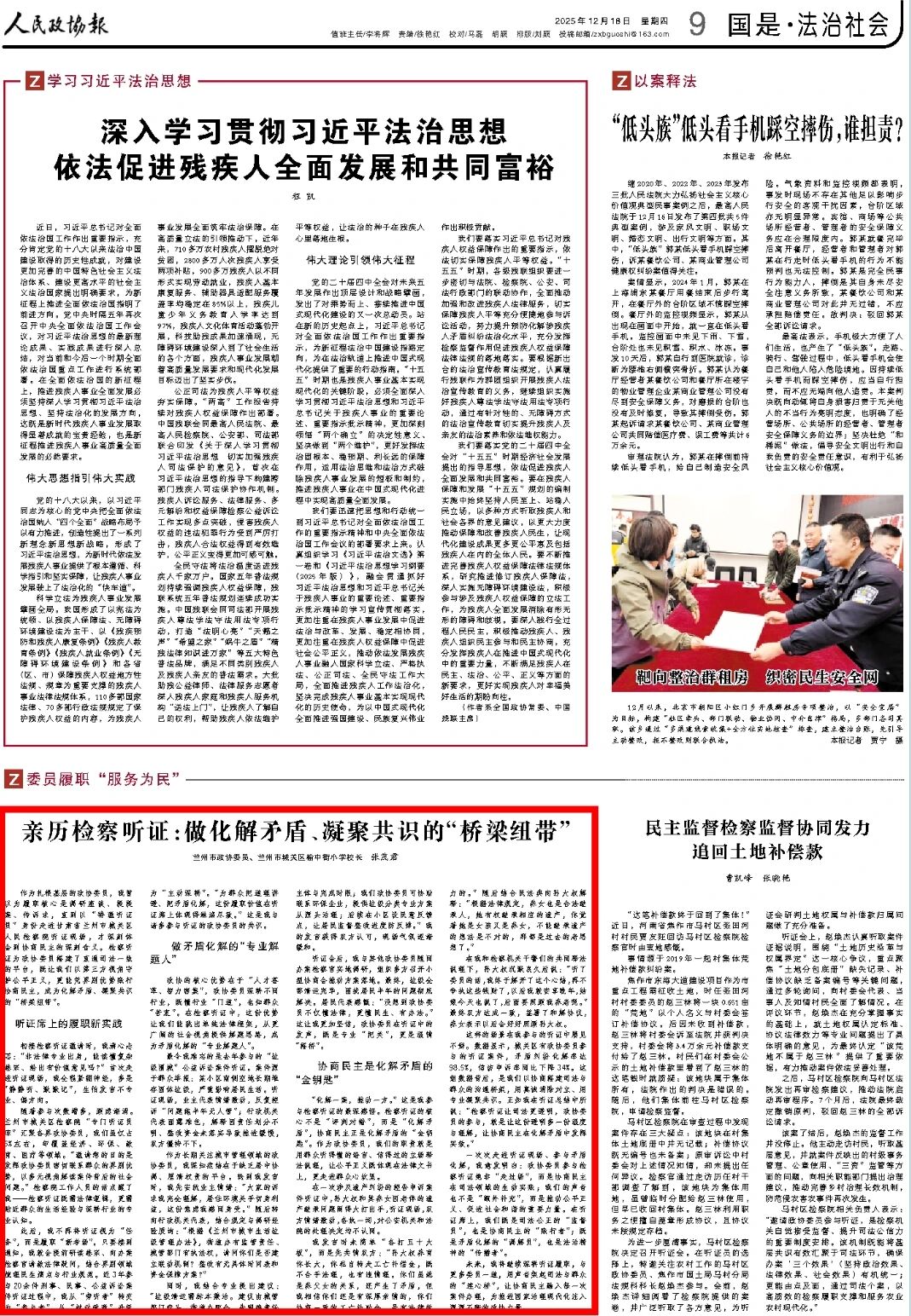2025年12月18日,人民政协报刊发《亲历检察听证:做化解矛盾、凝聚共识的“桥梁纽带”》。
