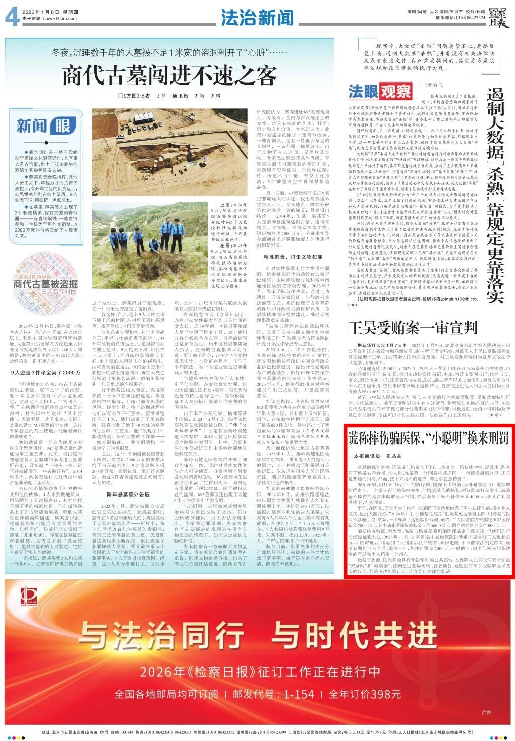 2026年1月8日,检察日报刊发《谎称摔伤骗医保,“小聪明”换来刑罚》。