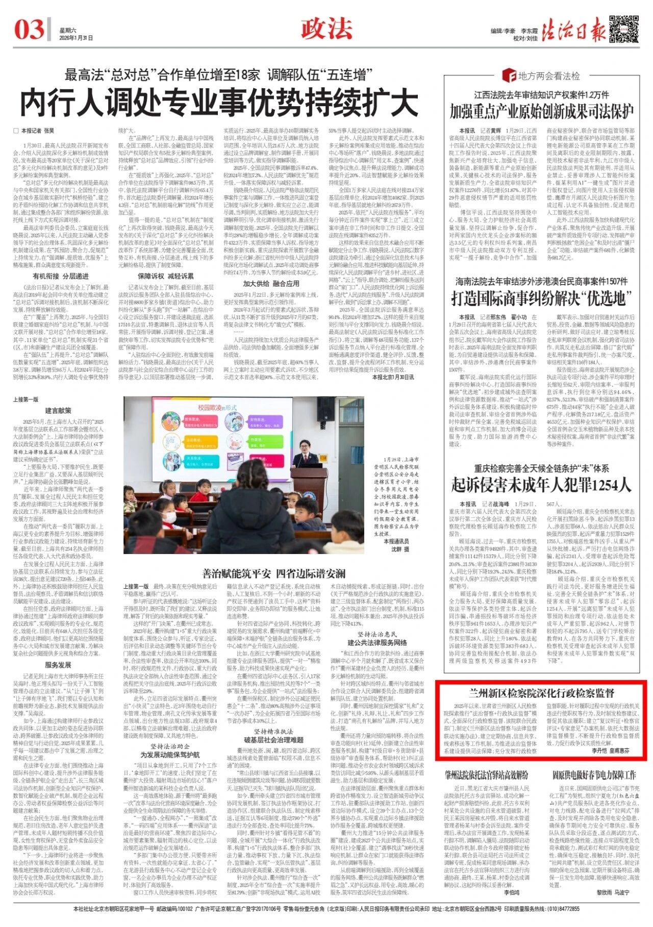 2026年1月31日,法治日报刊发《兰州新区检察院深化行政检察监督》。