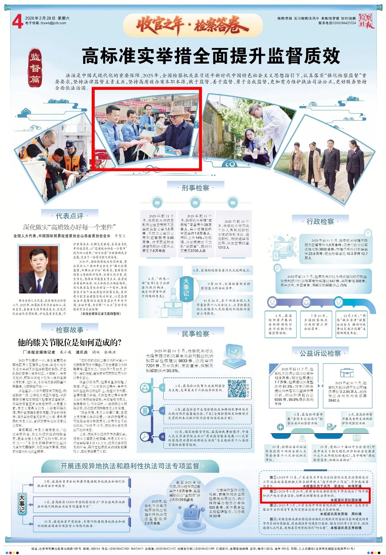 2026年2月28日,检察日报《收官之年·检察答卷》刊发甘肃省靖远县检察院干警在城区广场开展知识产权日普法宣传的图片新闻。
